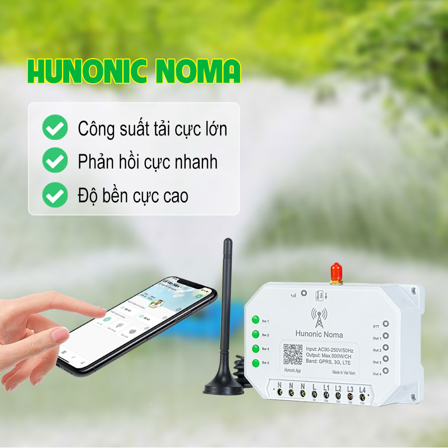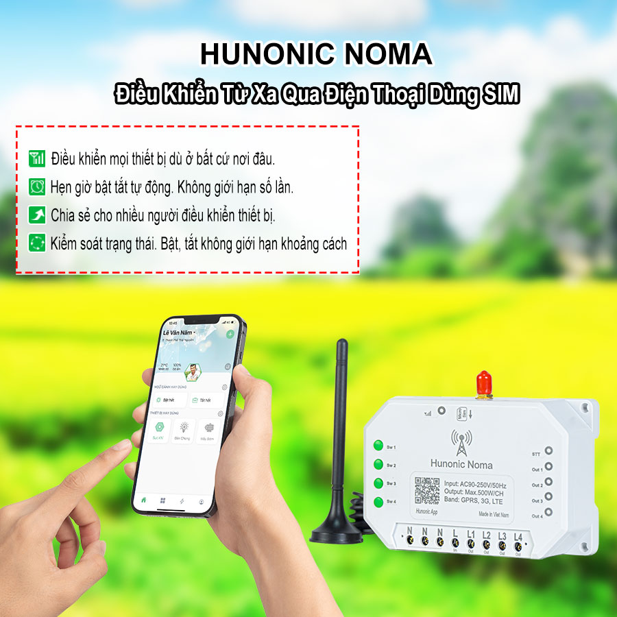 Đặt mua Công tắc Noma 4CH, Điều khiển từ xa qua điện thoại dùng Sim